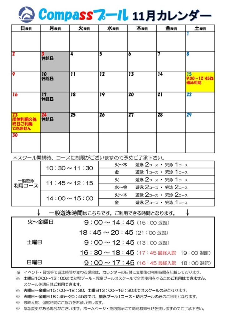 いつもCompassプールをご利用頂き誠にありがとうございます。