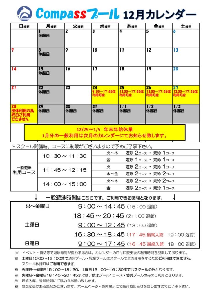 いつもCompassプールをご利用頂き誠にありがとうございます。